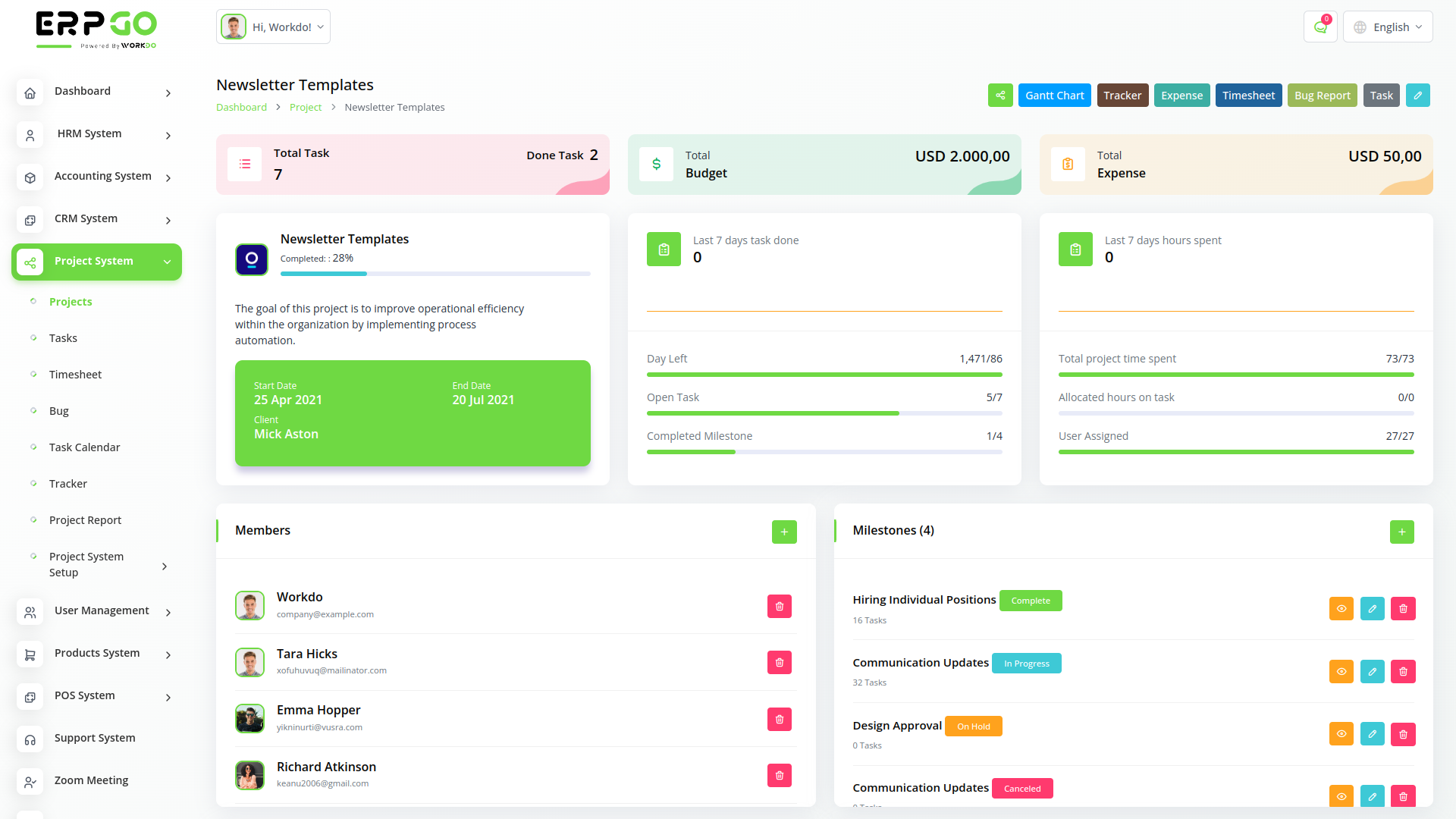 ERPGo SaaS All In One Business ERP With Project, Account, HRM, CRM & POS